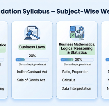 Complete CA Foundation syllabus explained subject-wise with weightage to help students plan smart preparation and focus on high-scoring areas.